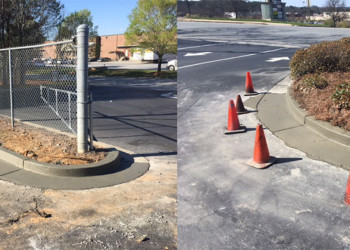 Concrete is the material of choice for many areas around a commercial parking lot. Common areas for concrete construction in a parking lot include curbing, walkways, ramps, dumpster pads, and loading docks.